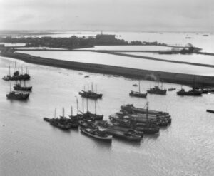 Vijftien Urker vissersboten lopen op zaterdag 31 januari 1953 de haven van Breskens binnen. De meeste mannen vertrekken vervolgens naar Urk om er de zondag door te brengen.