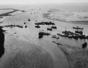 Vijftien Urker vissersboten lopen op zaterdag 31 januari 1953 de haven van Breskens binnen. De meeste mannen vertrekken vervolgens naar Urk om er de zondag door te brengen.