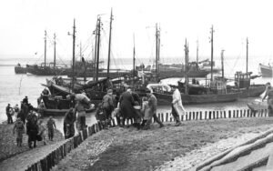 Met veel moeite keren de Urker vissers zondag al terug naar Breskens. Die nacht varen ze, onder leiding van Hessel Snoek van de UK141 ‘Jacob’, uit om hulp te bieden in het rampgebied.